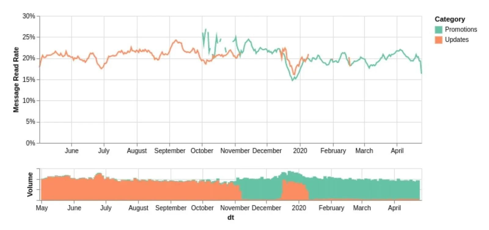 Persistence Score: Mailbox providers have always loved consistency and their ranking systems do, too. They wanna see repeat engagers, not one-off spikes. Tracking the % of Gmail recipients who opened 2+ of the last 4 sends will help you identify not only your most engaged audience, but also the content that seems to resonate best.